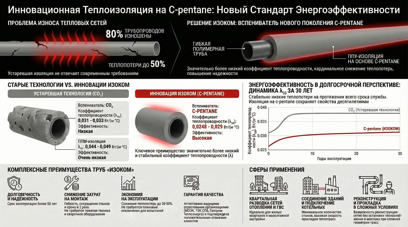 • Применение в магистральных теплотрассах и на промышленных объектах